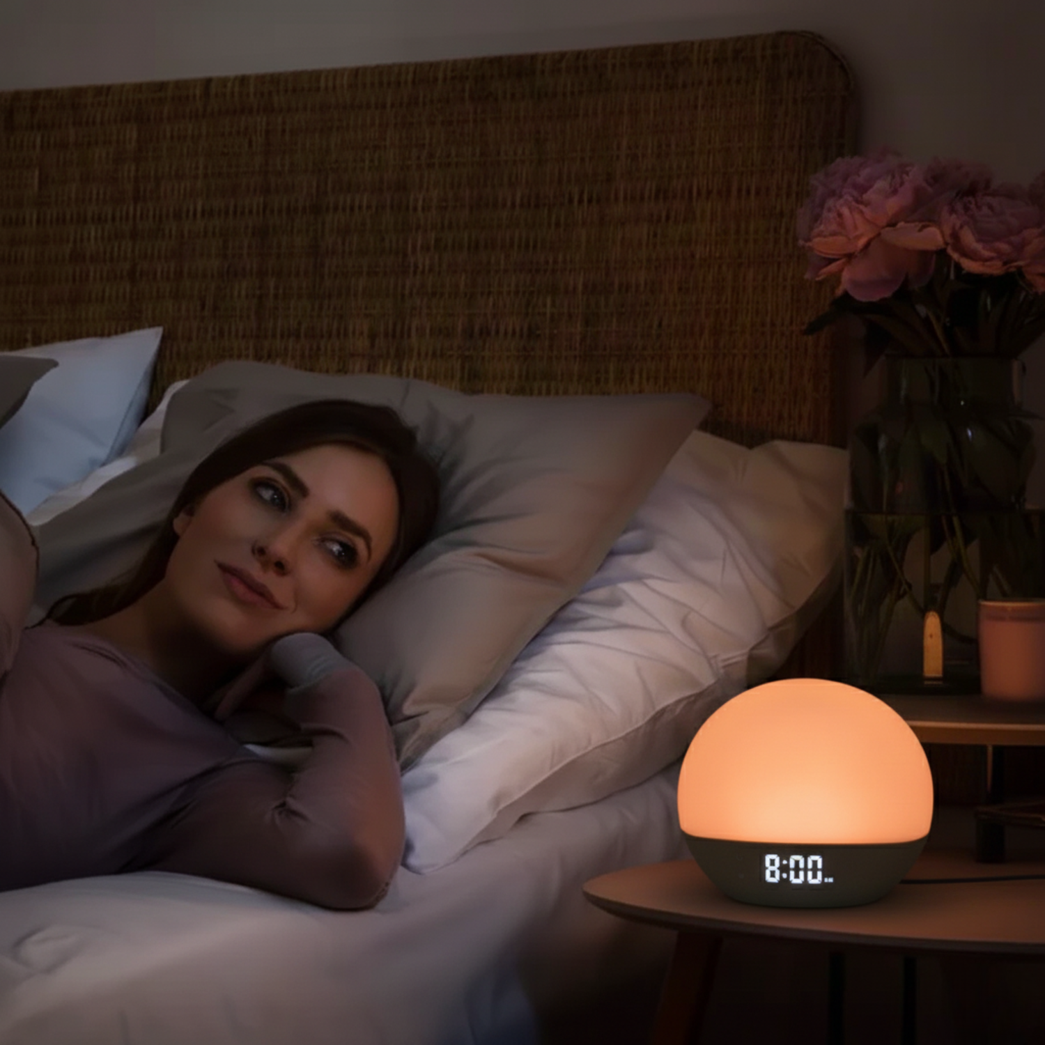Nýstárleg sólarupprásarljóstækni lýsir herbergið smám saman upp og hjálpar líkamanum að vakna mjúklega og verða meira vakandi – fyrir rólegri morgna og betri byrjun á deginum.